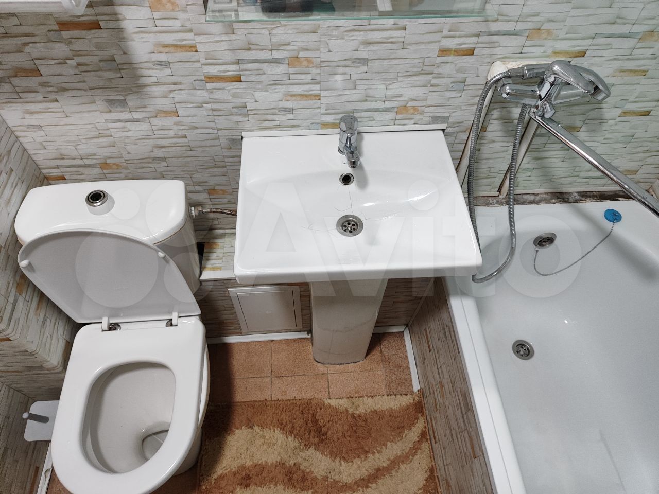 кухня укомплектована полностью. в комнате стол, угловой диван, шкаф горка. санузел совмещённый.